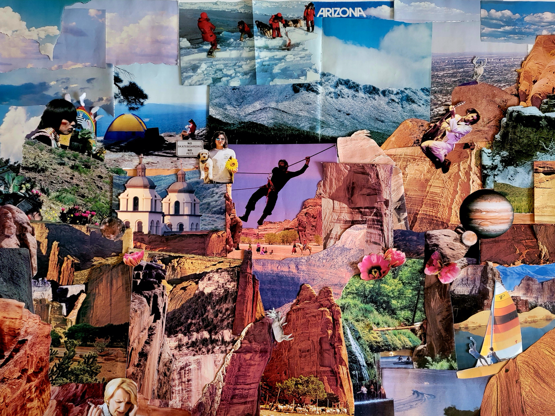 'Grand' was the largest collage made on canvas roughly around 2021-2022. It measures 48'x36' on white canvas, and is made entirely up of assorted Arizona Highway magazines. Minus one or two pages taken from one Thrasher magazine, and one Guitar World magazine.