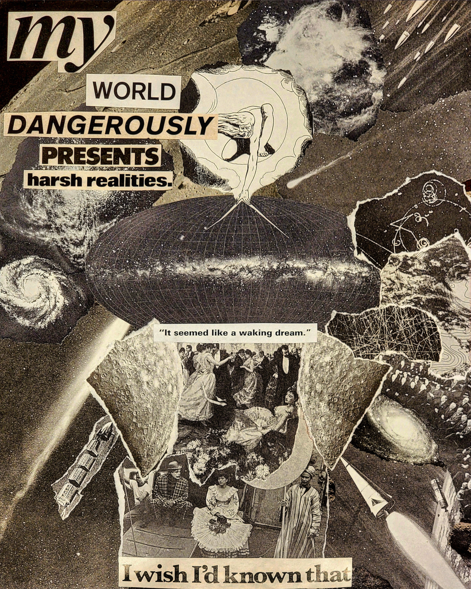 Harsh Realities was a spontaneous collage made sometime in 2024. I had taken it to a printshop and had it printed on plotter paper 24x36in size. It hands up as one of my favorite posters